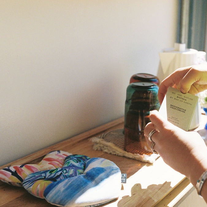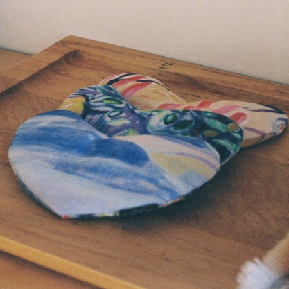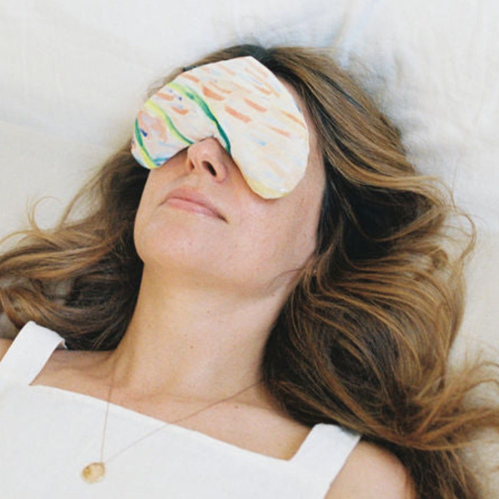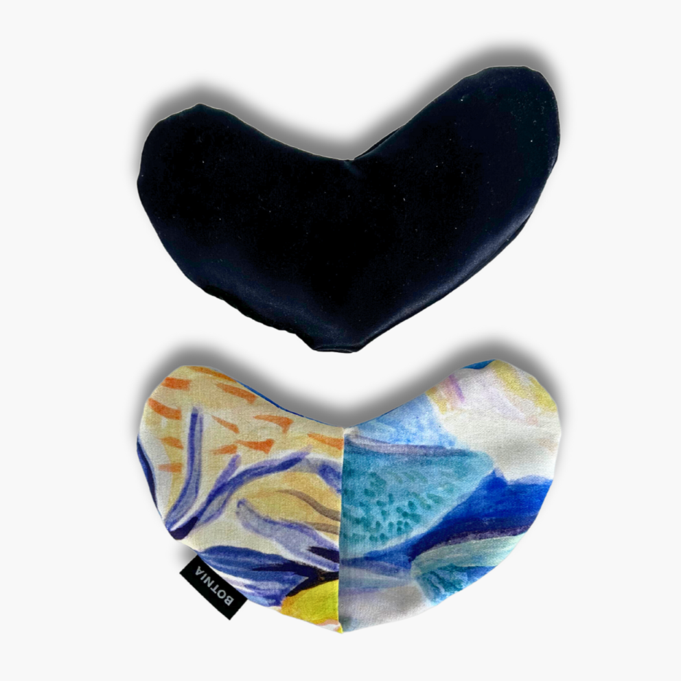 Handcrafted in Oakland, CA our eye pillow has been designed with a washable cover, so you can effortlessly maintain cleanliness. The fabric has been adorned with unique patterns handprinted from the watercolors we incorporated into our product design. These captivating landscapes serve as a gentle reminder to close your eyes and let go.