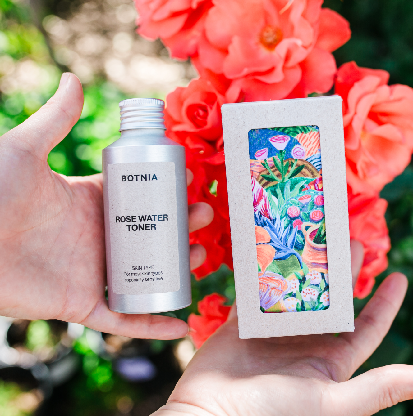 | Ingredients: | Water (Aqua), Rosa spp. (Rose) Flowers, Hamamelis Virginiana (Witch Hazel) Leaf, Rosa spp. (Rose) Hydrosol, Pelargonium Graveolens (Rose Geranium) Hydrosol, Rosa Damascena (Rose) Distillate, Citrus Aurantium Amara Flower (Neroli) Distillate, Musa Sapientum (Banana) Leaf/Trunk Extract, Organic Vegetable Glycerin, Benzeneethanol, Potassium Sorbate, Lactic Acid |