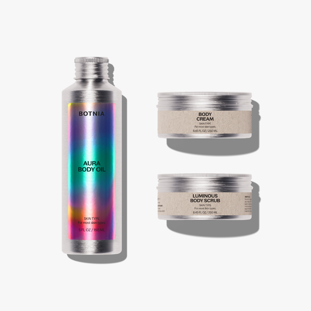 (1)- Aura Body Oil - A lightweight, indulgent oil that promotes skin softness and elasticity while providing antioxidant protection against environmental stressors.