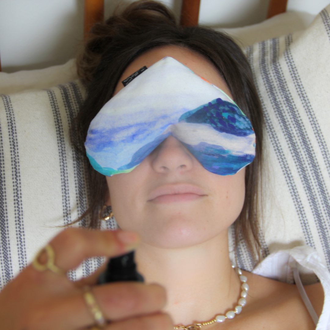 Handcrafted in Oakland, CA our eye pillow has been designed with a washable cover, so you can effortlessly maintain cleanliness. The fabric has been adorned with unique patterns handprinted from the watercolors we incorporated into our product design. These captivating landscapes serve as a gentle reminder to close your eyes and let go.